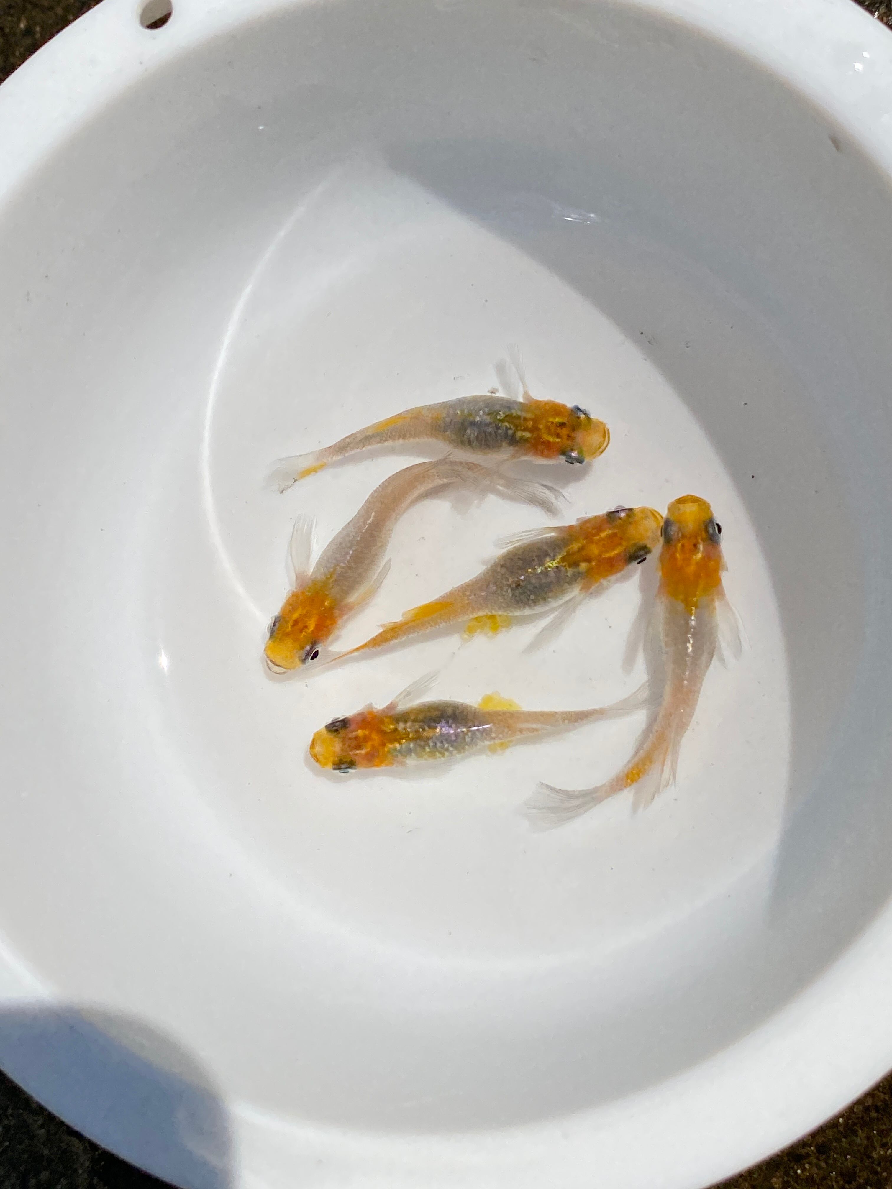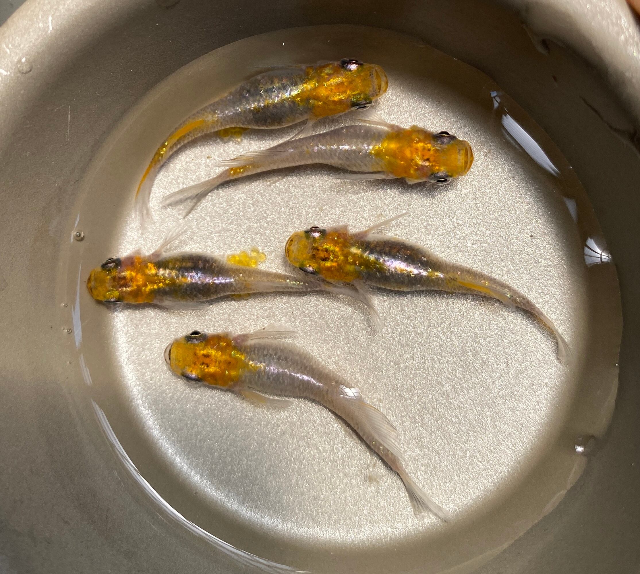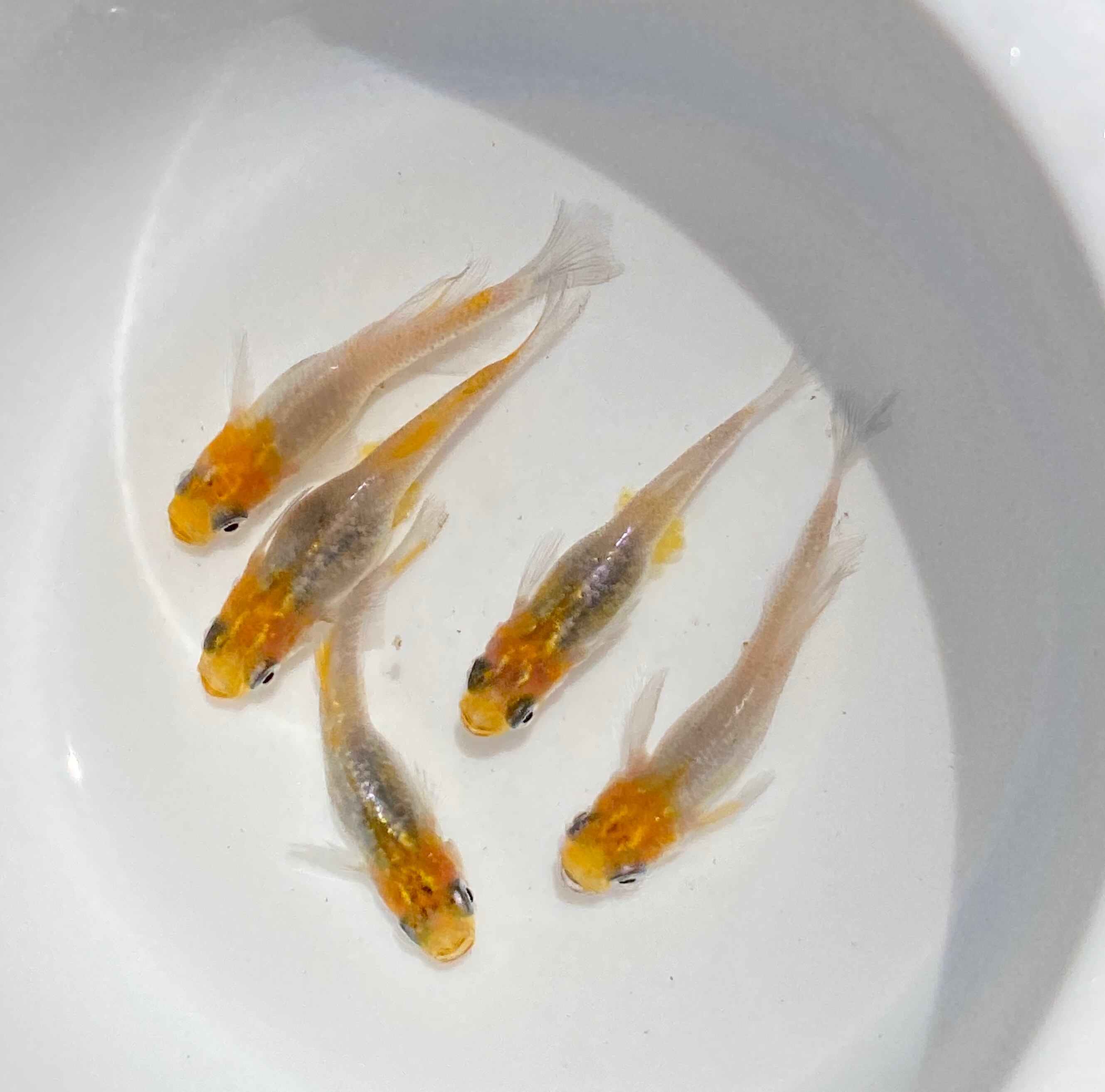 【現物】金獅子めだか レアな黄色強タイプ 雄2+雌3 (検索ワード メダカ 金色 金塊 ゴールド)