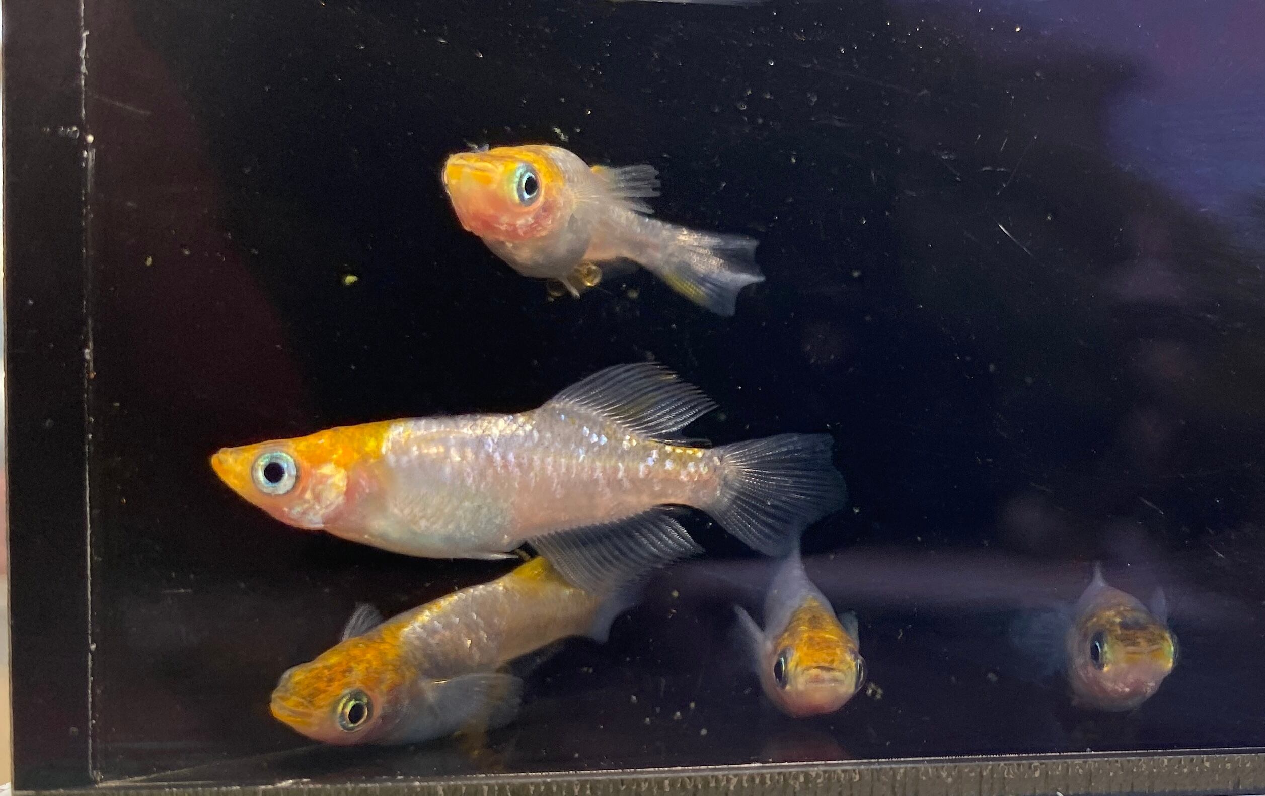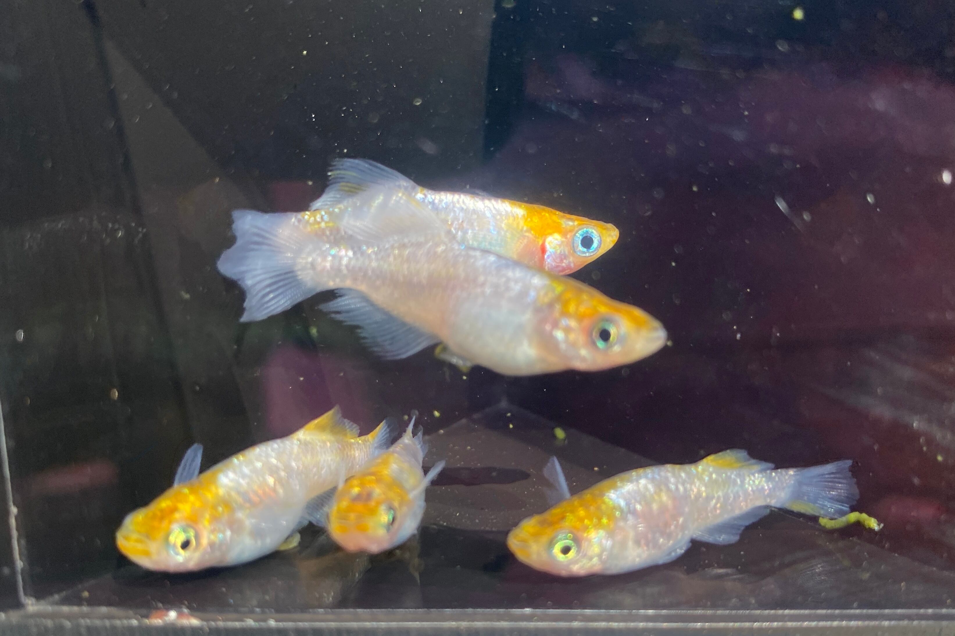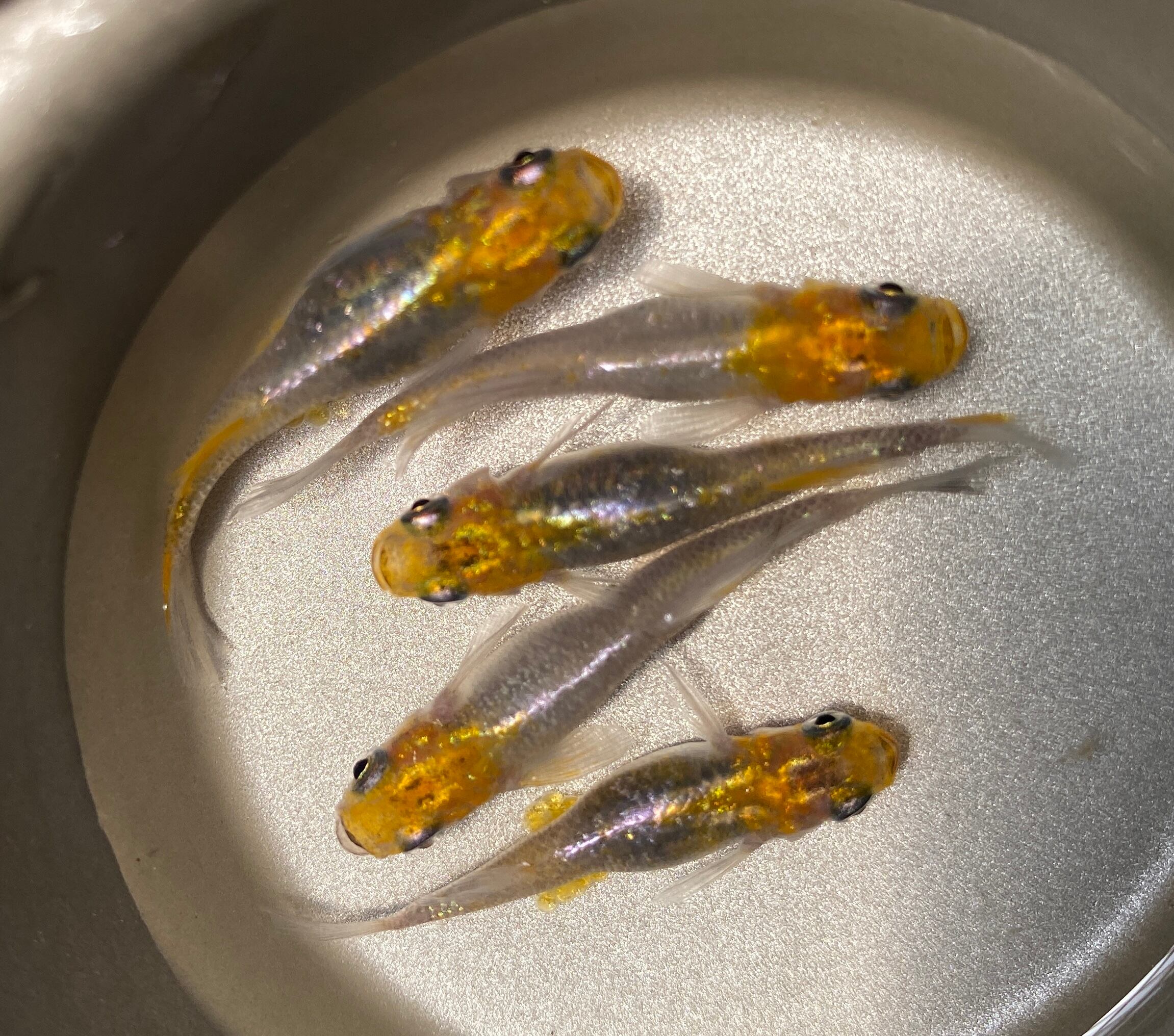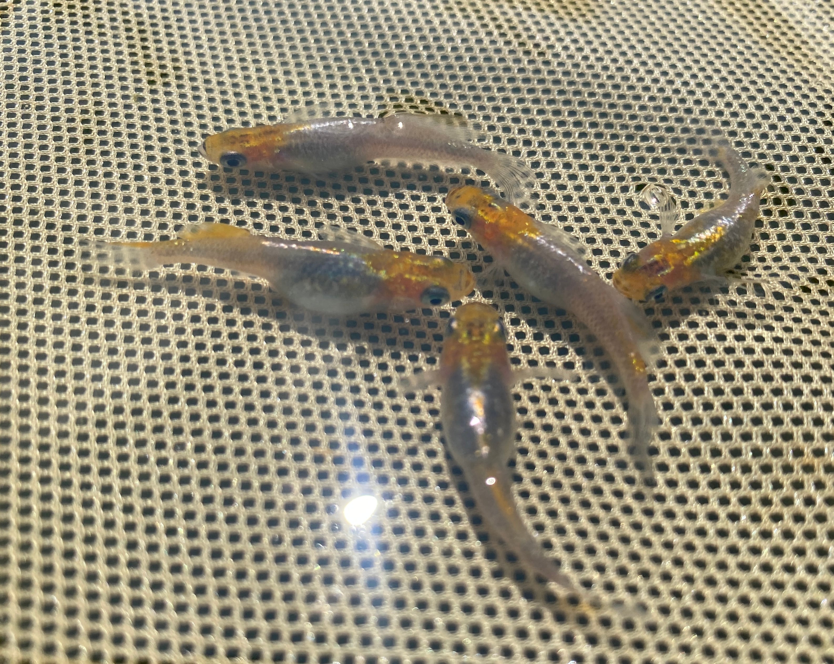 【現物】金獅子めだか レアな黄色強タイプ 雄2+雌3 (検索ワード メダカ 金色 金塊 ゴールド)
